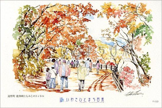 いわきひとまち百景ポストカード:遠野町 龍神峡ともみじのトンネル