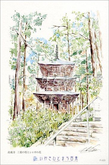いわきひとまち百景ポストカード:高蔵寺 三重の塔とシャガの花