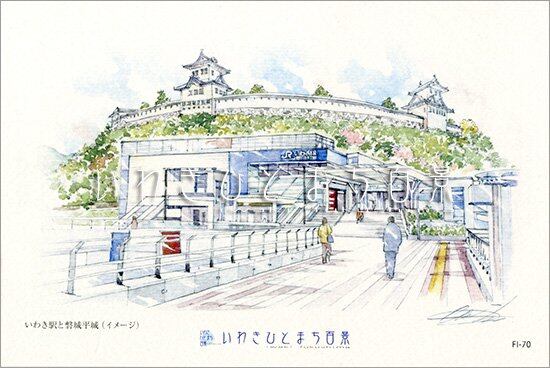 いわきひとまち百景ポストカード:いわき駅と磐城平城(イメージ)