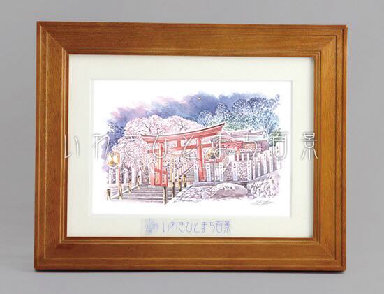 額(木製でシンプルなデザインです。卓上でご使用できます。)とセットでの販売です。